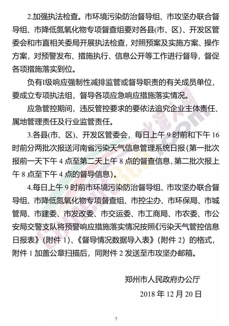 按照《鄭州市人民政府關(guān)于印發(fā)鄭州市重污染天氣應急預案(2018年修訂)的通知》(鄭政文〔2018〕177號)規(guī)定,經(jīng)鄭州市政府研究決定,12月20日22時發(fā)布重污染天氣紅色預警,并立即啟動Ⅰ級應急響應。據(jù)悉,這是今年秋冬鄭州市啟動的第一個紅色預警。通知提出工業(yè)污染源、移動污染源以及其他污染源減排相關(guān)措施方面: