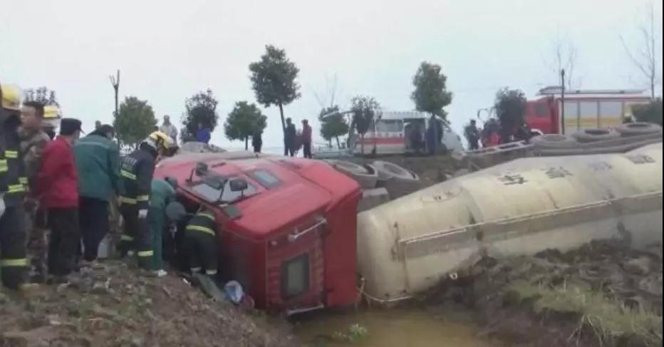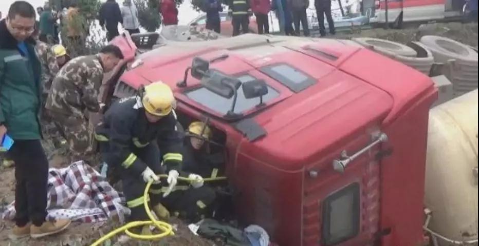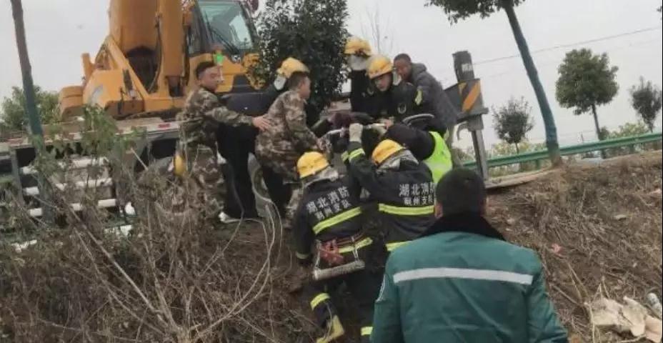 2018年12月20日13時(shí)許,湖北荊州洪湖市烏林鎮(zhèn)的鄉(xiāng)村公路上發(fā)生一起交通事故,一輛滿(mǎn)載40噸水泥的槽罐車(chē)側(cè)翻在路邊的溝內(nèi),車(chē)內(nèi)一名中年司機(jī)被變形的駕駛室壓住無(wú)法動(dòng)彈,經(jīng)當(dāng)?shù)叵?、交警、醫(yī)療、和群眾的共同努力將被困司機(jī)救出并送往醫(yī)院救治。