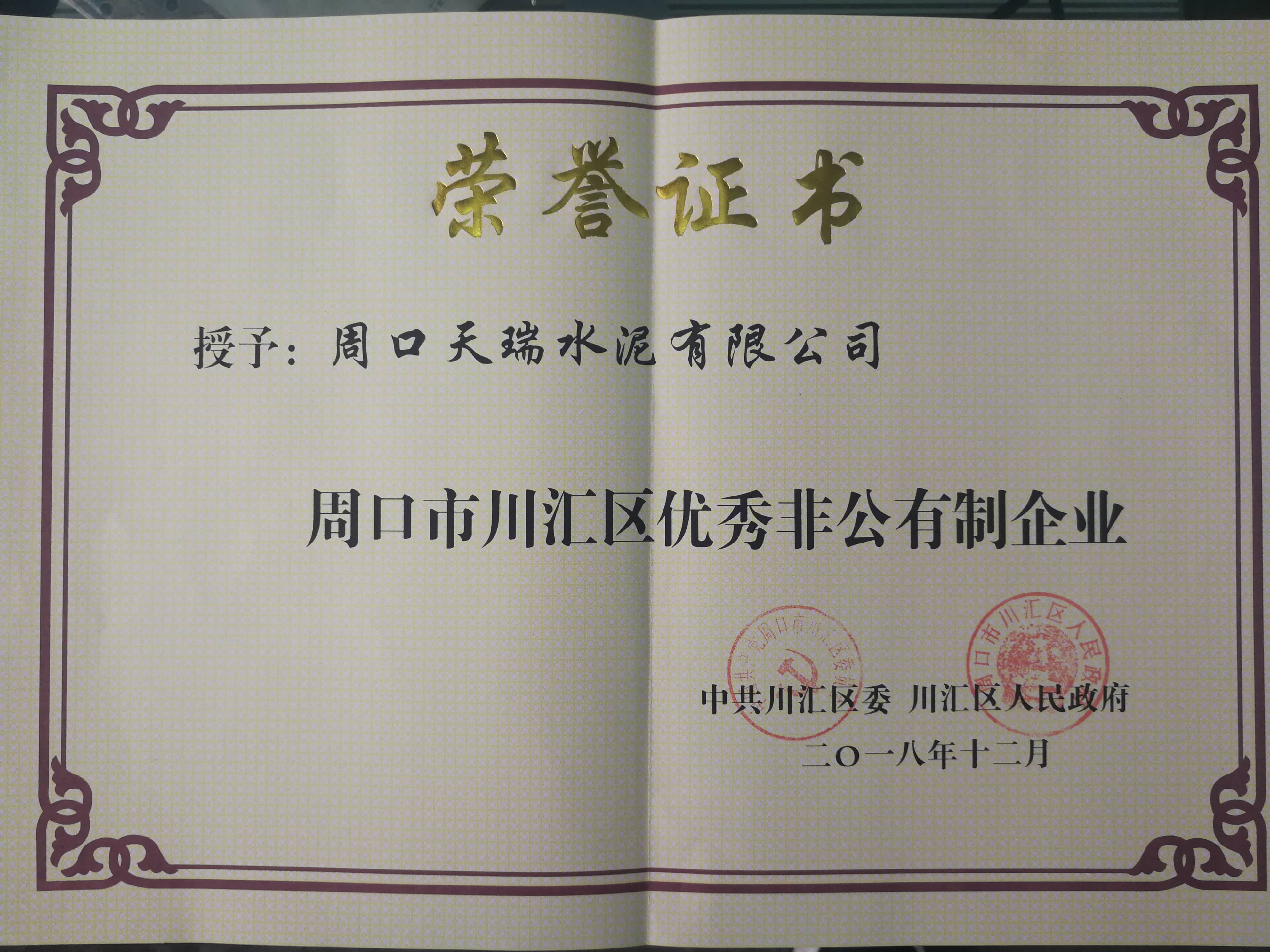 12月21日,在周口市川匯區(qū)區(qū)委、區(qū)政府召開的“促進(jìn)非公有制經(jīng)濟(jì)健康發(fā)展表彰大會”上,天瑞周口水泥公司被區(qū)委、區(qū)政府授予“周口市川匯區(qū)優(yōu)秀非公有制企業(yè)”榮譽(yù)稱號。