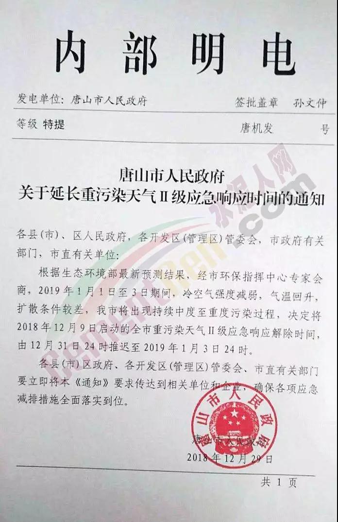 關(guān)于延長重污染天氣Ⅱ級應(yīng)急響應(yīng)時間的通知