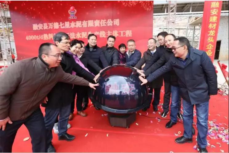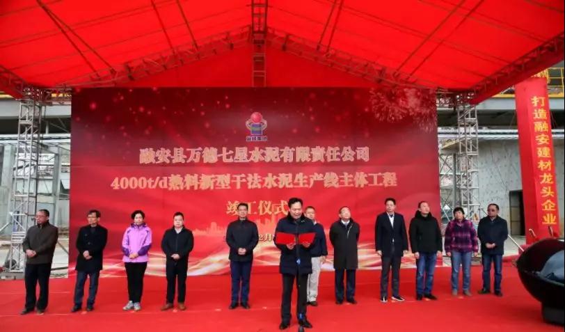 12月28日,融安縣萬(wàn)德七星水泥有限責(zé)任公司舉行4000t/d熟料新型干法水泥生產(chǎn)線主體工程竣工儀式現(xiàn)場(chǎng)。