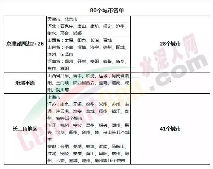 2018年錯(cuò)峰停限產(chǎn)區(qū)域不再僅僅限于京津冀及周邊地區(qū),長(zhǎng)三角一市三省、汾渭平原等區(qū)域也納入進(jìn)來。涉及城市數(shù)量將從此前的2+26個(gè)城市增加至現(xiàn)在80個(gè)城市。自2018年11月1日起,河北、河南、山東、山西、遼寧、吉林、陜西、甘肅、安徽、江蘇 、天津、新疆等幾十個(gè)地區(qū)近2000家水泥企業(yè)參與錯(cuò)峰停限產(chǎn)。
