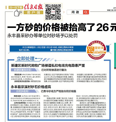 網(wǎng)友反映:永豐縣三坊鄉(xiāng)宗溪村有人在瀧江非法采砂,且價格超出政府制定的35元/方的砂石價格,被非法抬高到90元/方。