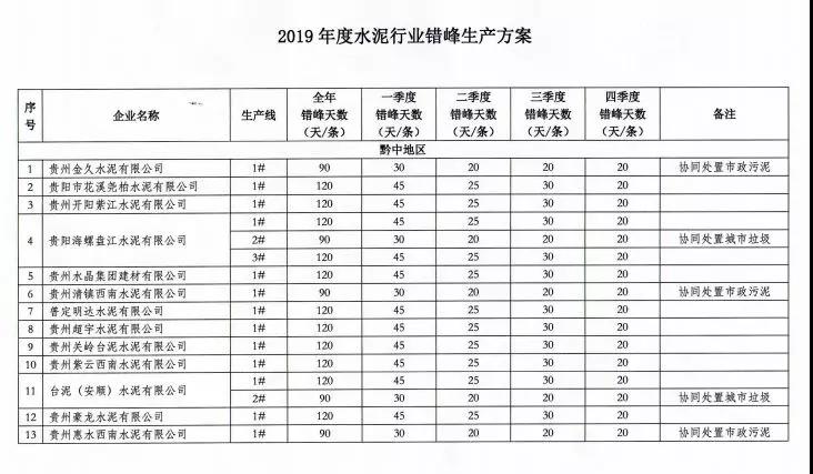 日前,貴州省工業(yè)和信息化廳與貴州省生態(tài)環(huán)境廳聯(lián)合發(fā)布《關(guān)于做好2019年度水泥行業(yè)錯峰生產(chǎn)的通知》。
