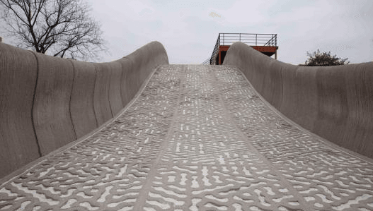 圖為世界最大規(guī)模3D打印混凝土步行橋的橋面。