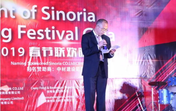他表示很榮幸和很高興有機會與這么多朋友在這個特殊的日子聚在一起。春節(jié)是中國最重要的節(jié)日。在春節(jié)期間,所有家庭成員將聚在一起慶祝,就像今天。中材建設(尼日利亞)有限公司于2008年由中國建材集團——全球最大的綜合建材產(chǎn)業(yè)集團在尼日利亞成立,并與Dangote,Lafarge和BUA集團建立了長期戰(zhàn)略合作伙伴關系,承擔了這些工業(yè)巨頭新水泥生產(chǎn)線的所有建設任務。經(jīng)過十年的密切合作,到目前為止,尼日利亞水泥生產(chǎn)不僅滿足當?shù)厮嗍袌龅男枨螅易屇崛绽麃喸?008年之前從水泥進口國轉(zhuǎn)向2018年的水泥出口國。中國和尼日利亞雙方在水泥行業(yè)都取得了豐碩的成果。在中國“一帶一路”倡議和中非合作框架的指導下,我們計劃將中國建材集團的環(huán)保產(chǎn)品帶到尼日利亞,實施生產(chǎn)本地化,推動尼日利亞建材行業(yè)的發(fā)展。通過與當?shù)睾献骰锇榈墓餐?,提高當?shù)厝嗣竦纳钯|(zhì)量!現(xiàn)在我們正處于中尼關系的黃金時期,我們真誠希望今后能與尼日利亞加強合作與交流。我們也相信中尼之間的友誼將永遠存在!