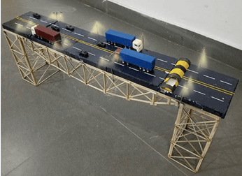 模擬了一種全新的道路概念。車(chē)輛行駛過(guò)程中的振動(dòng)能量通過(guò)路面的發(fā)電裝置轉(zhuǎn)化成電能,可用于道路設(shè)備供電、車(chē)況檢測(cè)。也可以在防止斷電的意外情況。