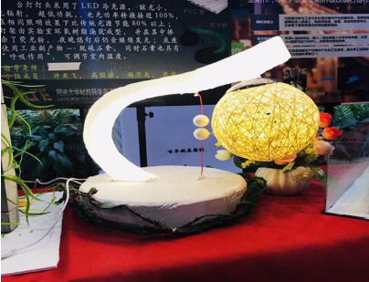 炫目的光芒從讓人不免把目光移至第二組設(shè)計(jì)的“Light&Night”上。以工業(yè)副產(chǎn)物脫硫石膏為原料的底座能有效調(diào)節(jié)室內(nèi)溫度,利用環(huán)氧樹(shù)脂澆筑成型的燈架中摻雜了熒光粉,即使關(guān)燈也能發(fā)出微微熒光。而燈頭的LED冷光源更與“節(jié)能”相契合,在提供照明的同時(shí)大限度地減少了能耗。