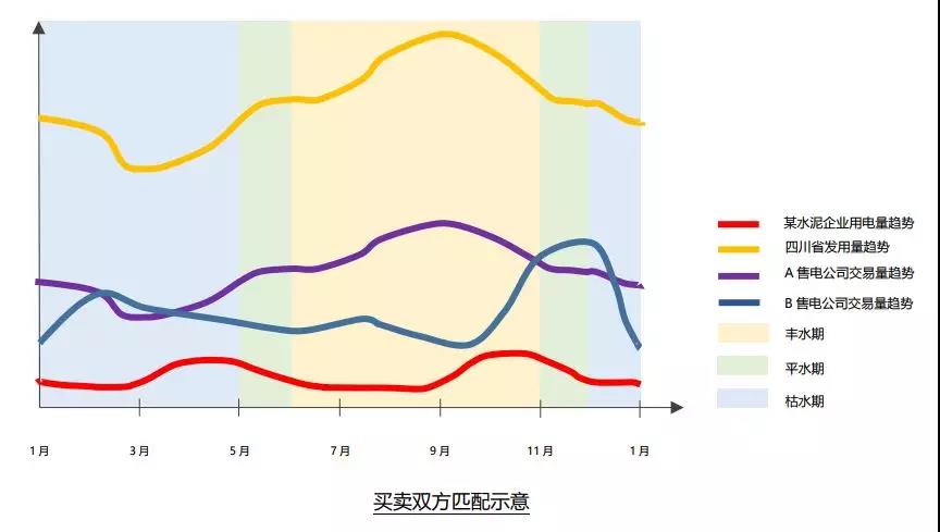 假設(shè)某水泥企業(yè)需在A、B兩家售電公司選擇一家進(jìn)行合作。從上圖中可以看出,雖然B售電公司的交易量趨勢(shì)與該水泥企業(yè)用電趨勢(shì)較為符合,但A售電公司交易趨勢(shì)更符合市場(chǎng)波動(dòng)。因此,A公司的成本均價(jià)應(yīng)低于B公司的成本均價(jià)。如果A、B售電公司服務(wù)質(zhì)量相同,則A售電公司存在更大議價(jià)空間;如果A、B售電公司價(jià)格相同,則A公司又更充足的利潤(rùn)空間來(lái)提供穩(wěn)定的、高質(zhì)量的服務(wù)。