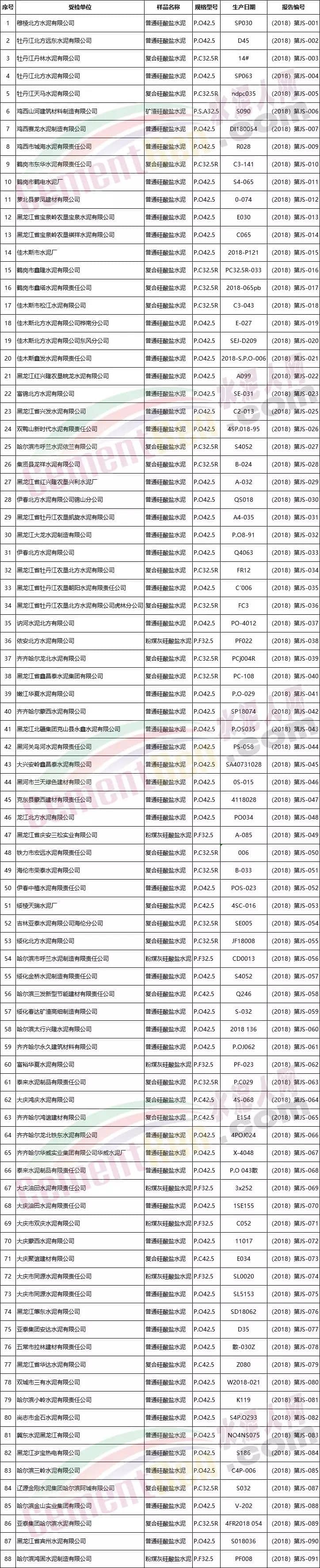 水泥產(chǎn)品2018年省級監(jiān)督抽查
