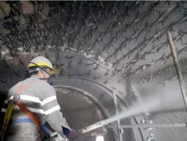 4、性能優(yōu)異:因噴射施工保證材質(zhì)分布均勻、無(wú)峰窩、空洞現(xiàn)象,與設(shè)備殼體結(jié)合緊密,在比傳統(tǒng)澆注料強(qiáng)度大幅降低的情況下使用壽命基本一致。