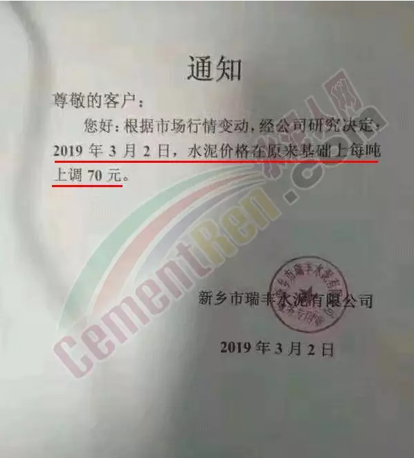 新鄉(xiāng)市瑞豐水泥有限公司調(diào)價函