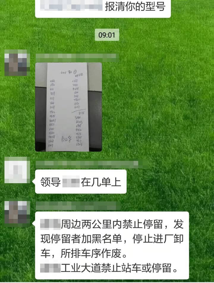 據(jù)了解,雖區(qū)域內(nèi)供應(yīng)略顯緊張,但是大多數(shù)企業(yè)門前并未見排長隊現(xiàn)象。企業(yè)利用新媒體平臺微信群通知的方式通知提貨車排隊編號和裝車時間。要求提貨車在距離工廠約兩公里外等候。收到微信通知再出發(fā)到工廠,避免工廠周邊道路擁堵。在工廠周圍停留者將被企業(yè)列入黑名單,停止進(jìn)廠卸車裝貨,所排車序同時作廢。