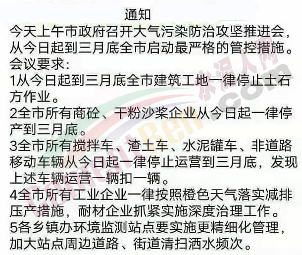2 全市所有商砼、干粉沙漿企業(yè)一律停產(chǎn)到三月底。