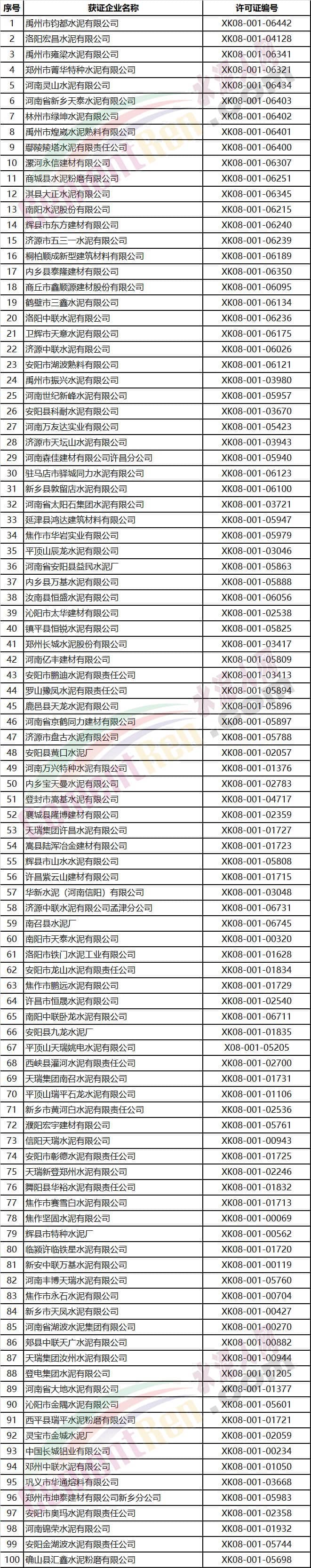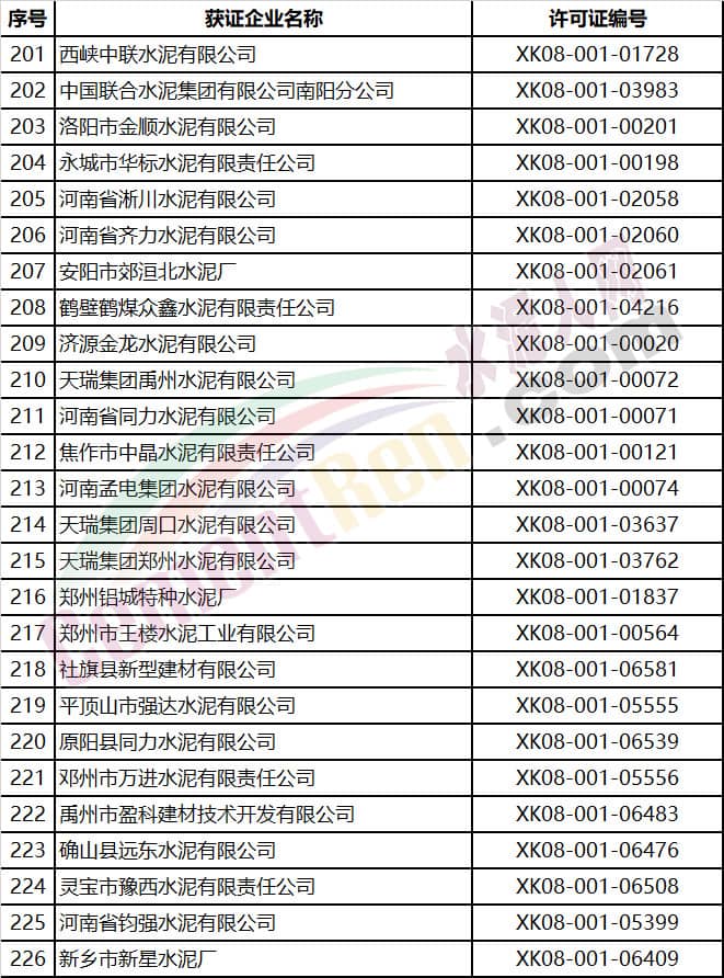 河南省部分水泥企業(yè)名單