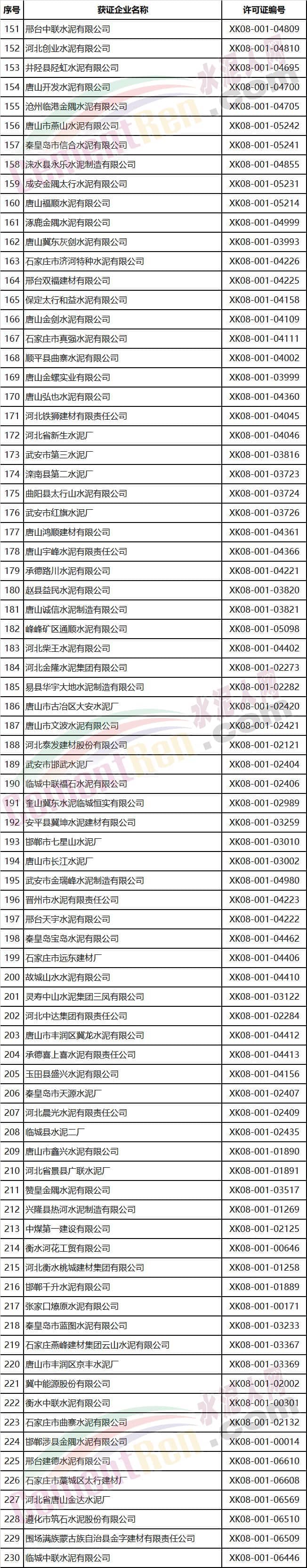 河北省部分水泥企業(yè)名單