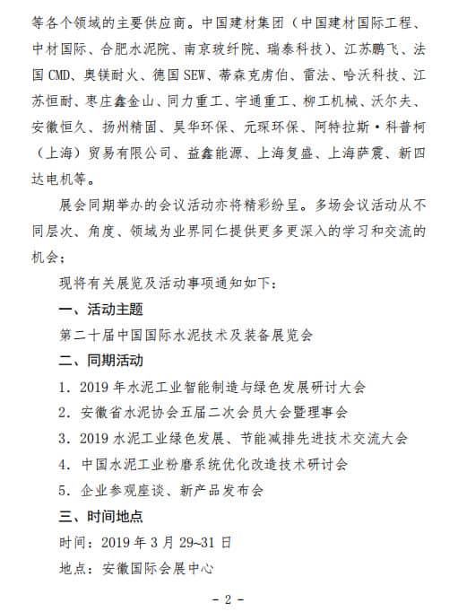 第二十屆中國國際水泥技術(shù)及裝備展覽會同期會議活動
