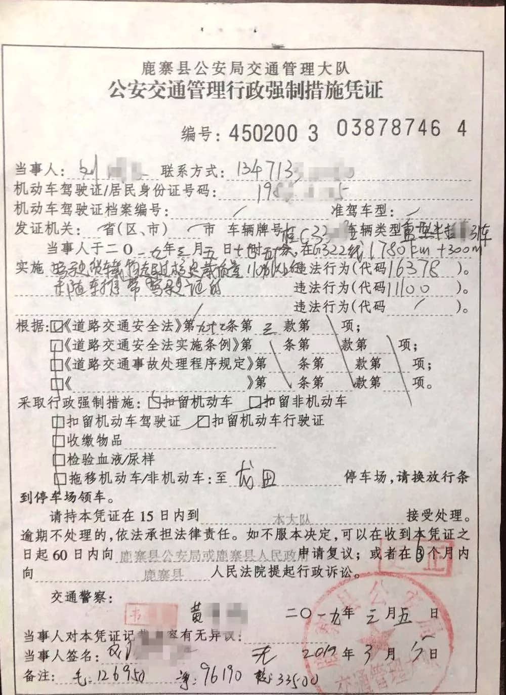 在事實(shí)面前,桂C****2的駕駛?cè)藙⒛诚蚪痪拱?,車子是從距被查獲地點(diǎn)五、六公里遠(yuǎn)的水泥廠開出來的,準(zhǔn)備前往桂林,“以為快到下班時(shí)間了,這個(gè)時(shí)間交警應(yīng)該下班了,就想著不會(huì)被查到,沒想到在路上遇見了交警”。