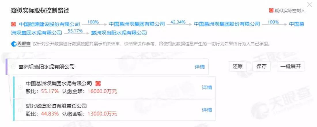 天眼查數(shù)據(jù)顯示:葛洲壩當(dāng)陽水泥為中國葛洲壩集團水泥有限公司和湖北城堡投資有限責(zé)任公司合資,由中國葛洲壩集團水泥有限公司控股。