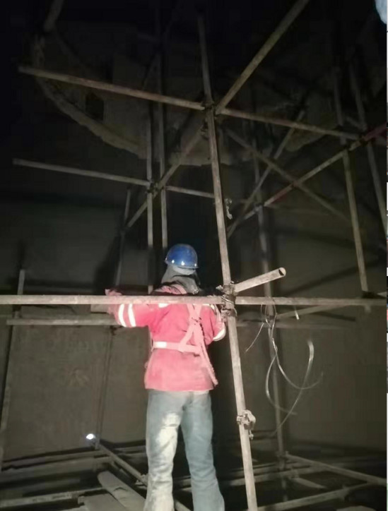 從上述資料圖可見,預(yù)熱器內(nèi)設(shè)立鋼管架,架子上鋪設(shè)木板,同時搭建防護(hù)棚,以保護(hù)人員安全。檢修作業(yè)時工作人員站立于鋼管架上,憑借安全帶防護(hù),防止墜落。若上述安全措施不當(dāng),或工作人員未系好安全帶,便極易發(fā)生高處墜落事故。