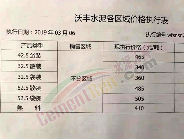 沃豐水泥第一時(shí)間發(fā)布區(qū)域價(jià)格執(zhí)行表,以提示客戶價(jià)格變動(dòng)情況。