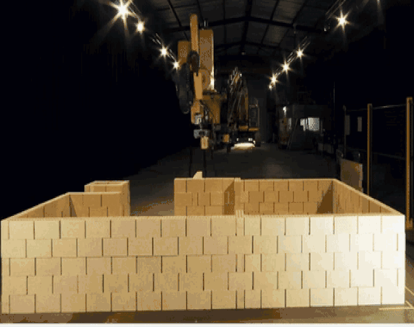 它的工作原理是:利用3D計算機,輔助設(shè)計房屋的形狀結(jié)構(gòu)。機器人隨后可計算每塊磚的位置,磚塊置于傳送帶上,沿著機器人伸縮臂運送。傳至末端,一個爪樣的機械手握住磚塊。