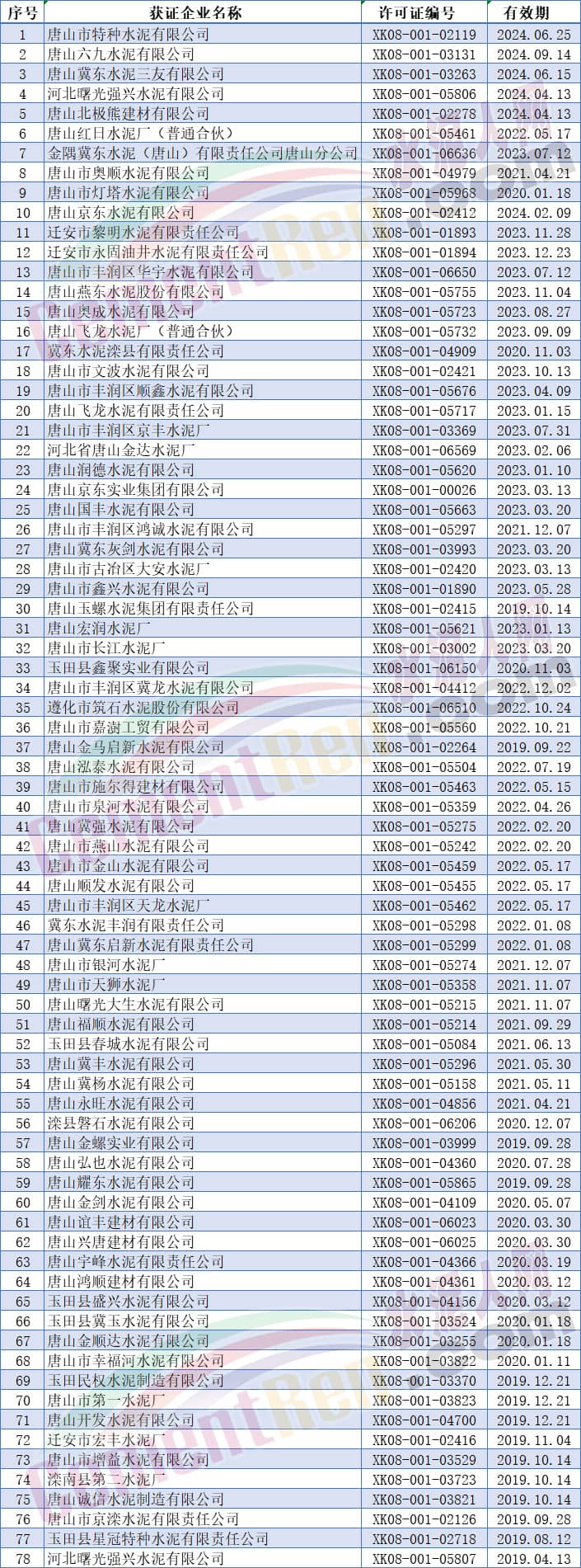 唐山市水泥企業(yè)名單