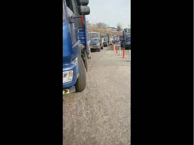 視頻截圖:唐山豐潤(rùn)區(qū)一家水泥企業(yè)門前水泥車排起長(zhǎng)隊(duì)