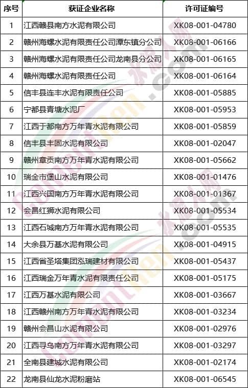江西省贛州市水泥企業(yè)名單