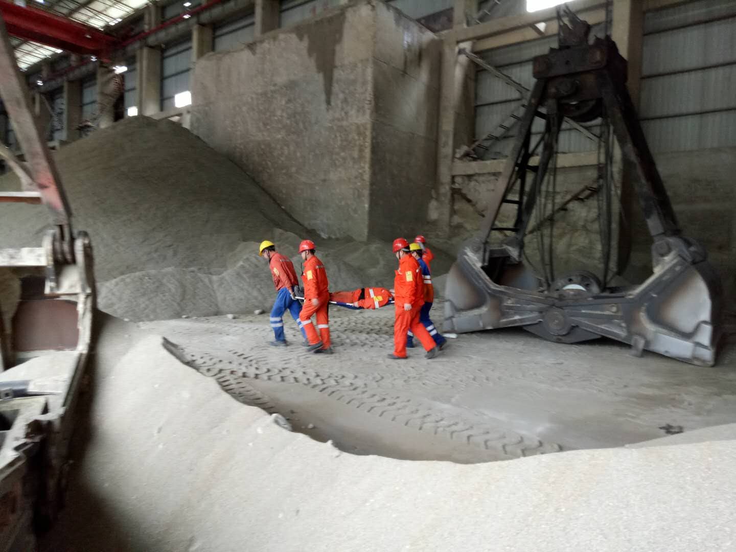 “事故”發(fā)生后,現(xiàn)場安全員立即向安全部長緊急報告。該公司迅速啟動了班組、部門、公司三級應急救援預案,安全部長迅速通知危險源控制組、安全救援組和醫(yī)療救護組人員緊急集合,第一時間展開救援行動。危險源控制組和安全救援組人員首先用鼓風機向磨機內送風、降溫,同時對磨機內氧氣進行檢測。根據(jù)檢測結果,在做好安全防護措施后,醫(yī)療救護組人員進入磨機實施救援,并用擔架將“事故”人員抬到空曠通風處,進行現(xiàn)場急救,同時撥打當?shù)?ldquo;120”趕往現(xiàn)場救援。整個演練過程緊張有序,各應急救援小組在爭分奪秒的同時,處置環(huán)節(jié)配合默契,在最短的時間內完成了從事故發(fā)生、自救和啟動三級應急聯(lián)動、人員疏散及搜救、物資回收等過程。演練結束后,安全部長向各位員工詳細講解了進入磨機作業(yè)前的安全準備事項和作業(yè)步驟、氣體檢測儀等安全設備和器材的使用、防護用具的穿戴方法、事故發(fā)生后的報告程序等。同時,安全部將對本次演練進行總結,及時查找漏洞和不足,以便在今后的工作中加以改進。