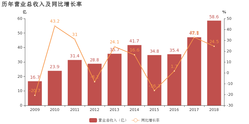 皖維高新于2019年3月26日披露年報,公司2018年實現(xiàn)營業(yè)總收入58.6億,同比增長24.5%;實現(xiàn)歸屬于母公司所有者的凈利潤1.3億,同比增長52.6%;每股收益為0.07元。報告期內,公司毛利率為16.5%,較上年提高0.7個百分點,凈利率為2.2%,基本維持上年水平。