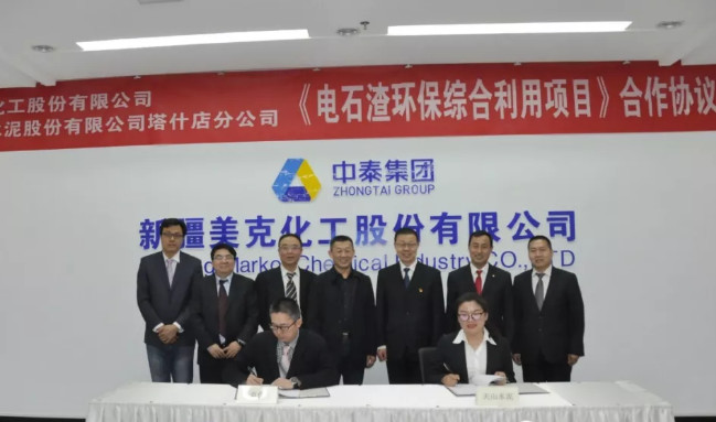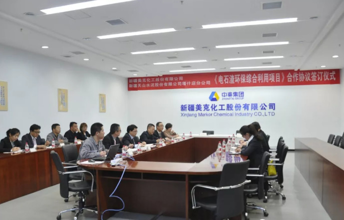 座談結(jié)束后,隨后雙方舉行合作協(xié)議簽訂儀式?!峨娛h(huán)保綜合利用項(xiàng)目》是由美克化工全額投資對塔什店天山水泥公司熟料生產(chǎn)線進(jìn)行技術(shù)改造,由天山水泥提供建設(shè)場地,項(xiàng)目建成后美克化工將合格電石渣免費(fèi)拉運(yùn)至天山水泥廠區(qū)內(nèi),項(xiàng)目建成后可消耗美克化工生產(chǎn)過程產(chǎn)生的全部電石渣,變工業(yè)廢渣為建筑資源,節(jié)約資源、能源,變廢為寶,符合國家節(jié)能降耗、發(fā)展循環(huán)經(jīng)濟(jì)的產(chǎn)業(yè)政策,符合國家節(jié)約土地政策和有關(guān)環(huán)境保護(hù)新規(guī)定。
