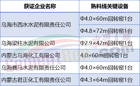 內(nèi)蒙古烏海市熟料生產(chǎn)線名單