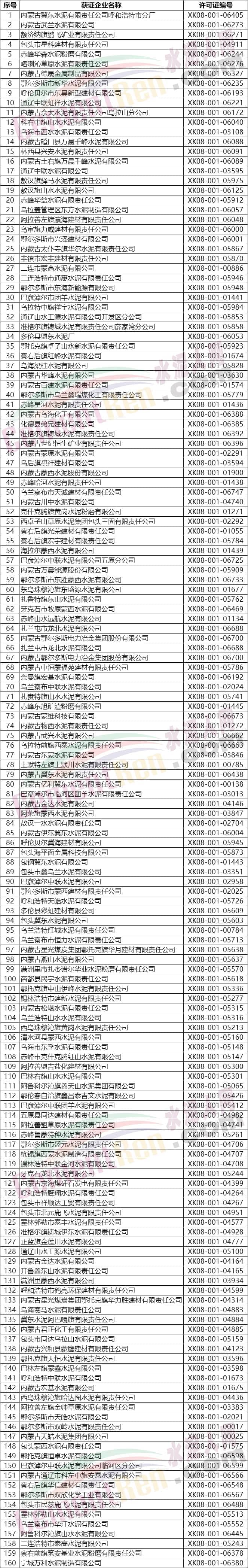內(nèi)蒙古自治區(qū)水泥企業(yè)名單