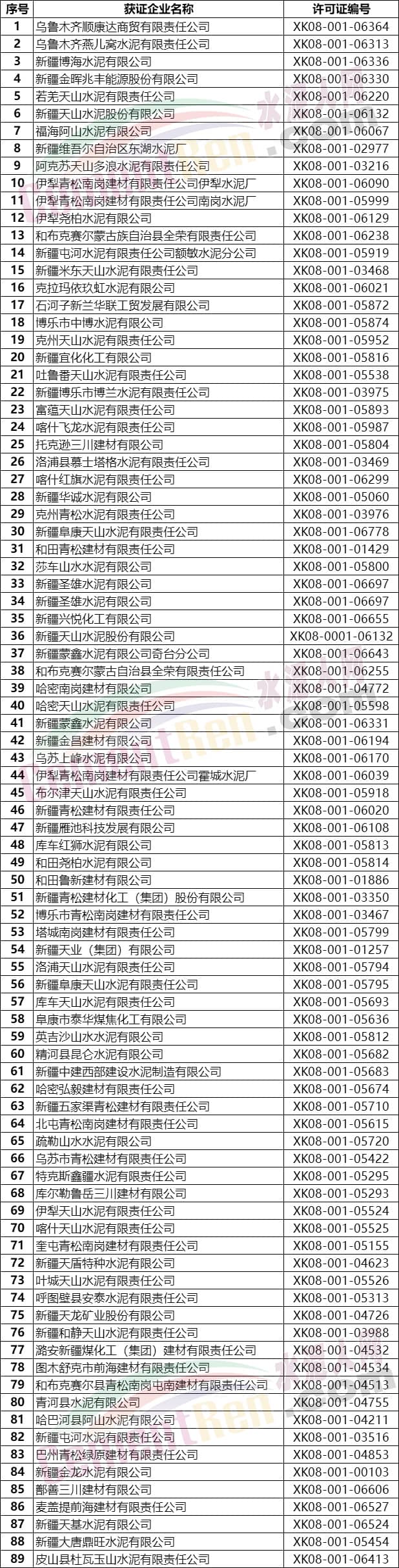 新疆維吾爾自治區(qū)水泥企業(yè)名單