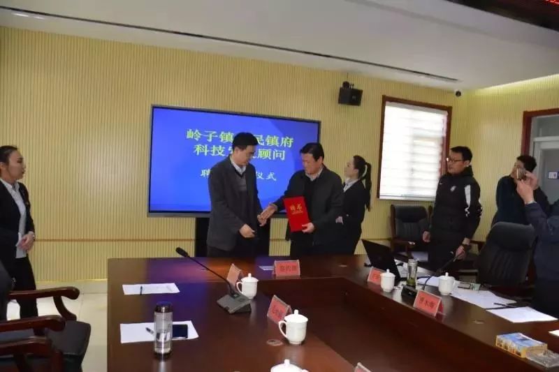 鎮(zhèn)黨委書記孫藝兵向毛巖鵬副教授頒發(fā)科技顧問聘書
