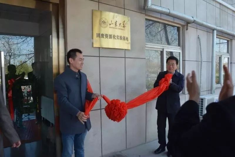 王文龍教授和趙軍區(qū)長為山東大學與寶山水泥共建固廢資源化實驗基地揭牌
