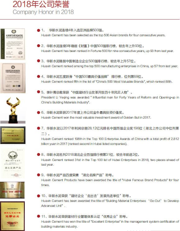 2018年,華新水泥積極完善內(nèi)部治理機(jī)制,加強(qiáng)風(fēng)險(xiǎn)識(shí)別與評(píng)估,努力提升公司運(yùn)營管理能力,實(shí)現(xiàn)公司最佳經(jīng)營業(yè)績。