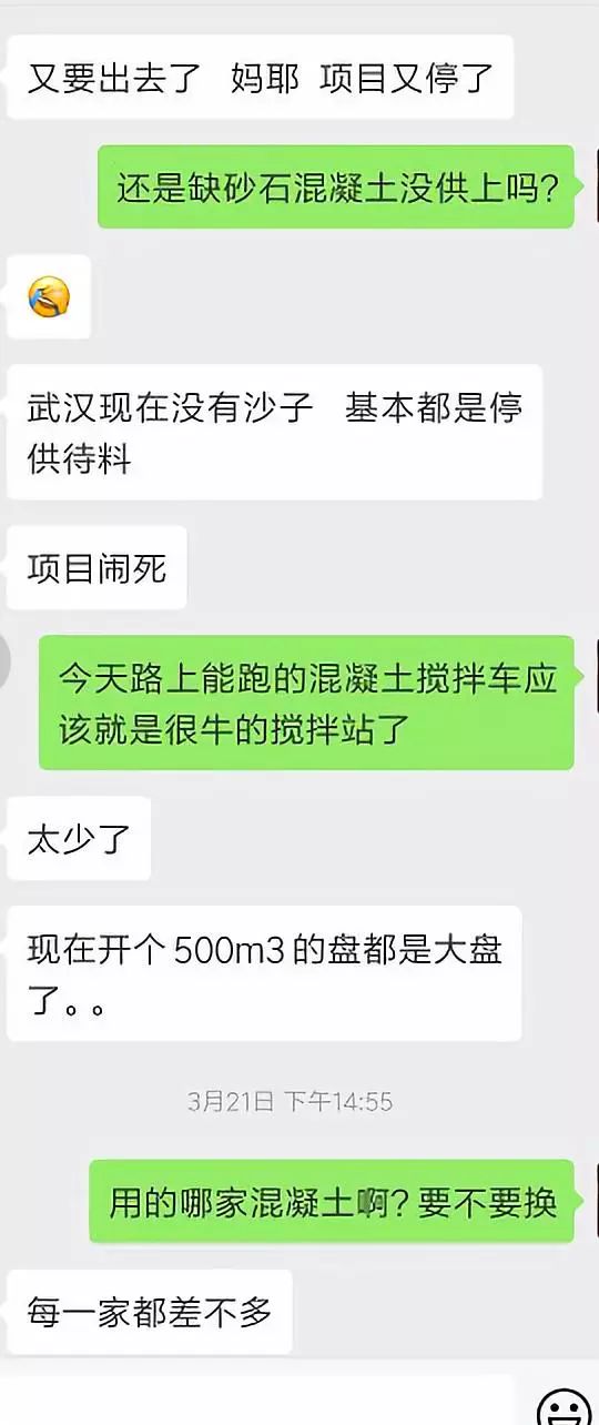 “現(xiàn)在混凝土真難買呀,好多項目跟我要混凝土,現(xiàn)在工期很緊張,大家總不能看著工地停工吧。”武漢大型施工單位A公司采購部Z總感嘆道。