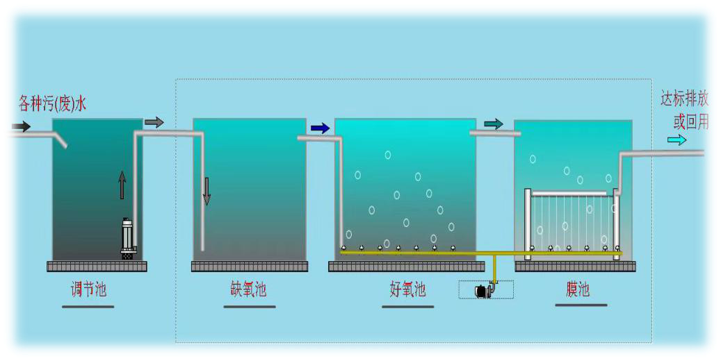 “集裝箱”的研發(fā)主要針對城鎮(zhèn)鄉(xiāng)村、住宅小區(qū)、醫(yī)院、食品加工、屠宰廢水等,因此在工藝選擇上,通常采用A2O(A/O)+MBR工藝,A2/O的智能化集成式污(廢)水處理設(shè)備(ZIWT)可實現(xiàn)同步脫氮除磷。