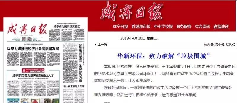 《咸寧日?qǐng)?bào)》4月10日?qǐng)?bào)道:1日,記者走進(jìn)位于赤壁高新區(qū)的華新水泥(赤壁)有限公司環(huán)保工廠,現(xiàn)場(chǎng)看到市政生活垃圾處置全過(guò)程,生態(tài)高效如同變魔術(shù)一般,讓人印象深刻。