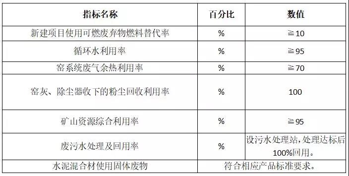 8.1 新建水泥(熟料)生產(chǎn)線項(xiàng)目須滿足《水泥行業(yè)清潔生產(chǎn)評(píng)價(jià)指標(biāo)體系》要求,可比熟料綜合煤耗、綜合電耗、綜合能耗和可比水泥綜合電耗、綜合能耗及外購(gòu)熟料可比水泥綜合電耗、綜合能耗要達(dá)到《水泥單位產(chǎn)品能源消耗限額》要求。能源消耗準(zhǔn)入指標(biāo)、資源綜合利用指標(biāo)分別見(jiàn)表2、表3。