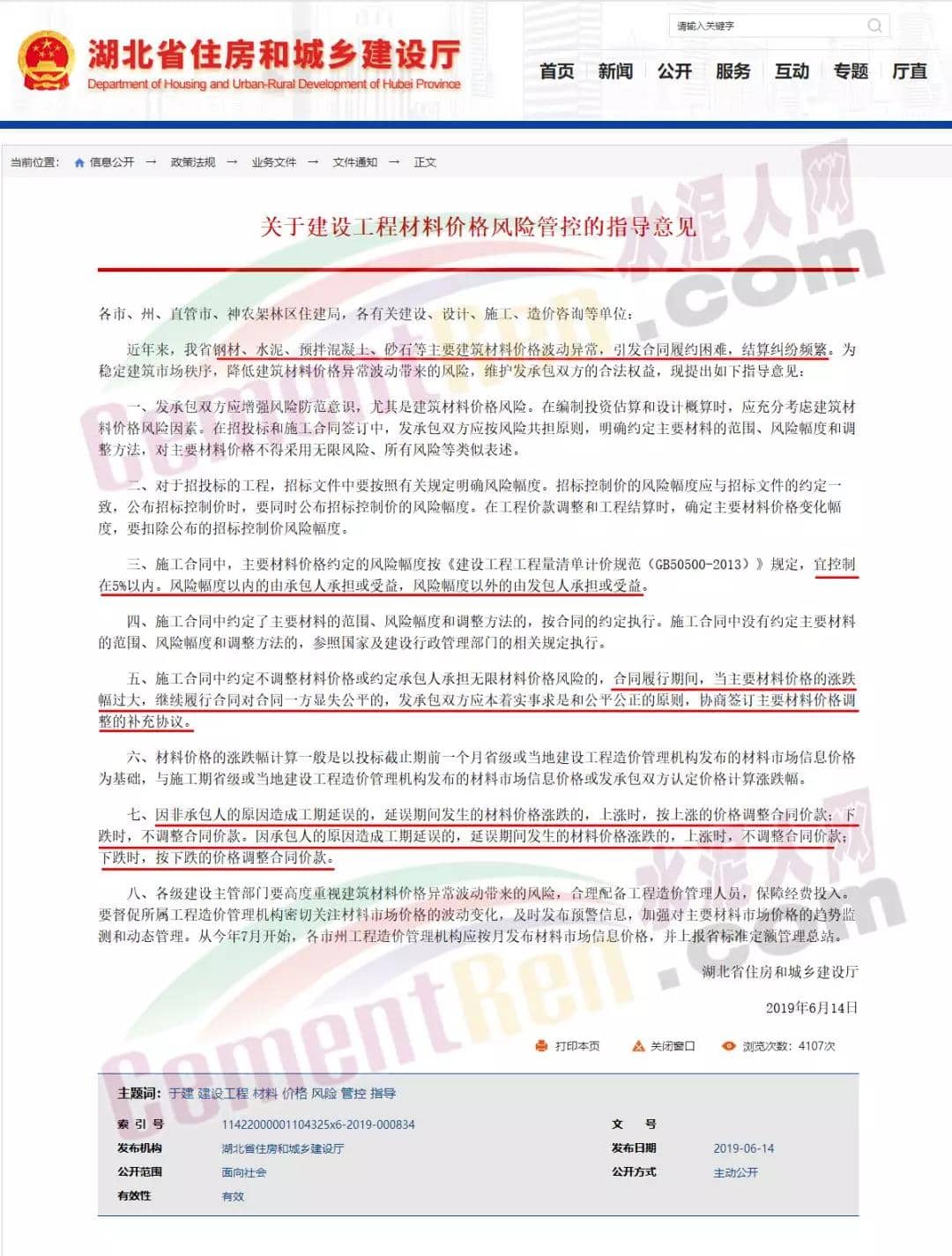 日前,湖北省住房和城鄉(xiāng)建設廳發(fā)布《關于建設工程材料價格風險管控的指導意見》稱:近年來,湖北省鋼材、水泥、預拌混凝土、砂石等主要建筑材料價格波動異常,引發(fā)合同履約困難,結算糾紛頻繁。為穩(wěn)定建筑市場秩序,降低建筑材料價格異常波動帶來的風險,維護發(fā)承包雙方的合法權益,提出相關意見。