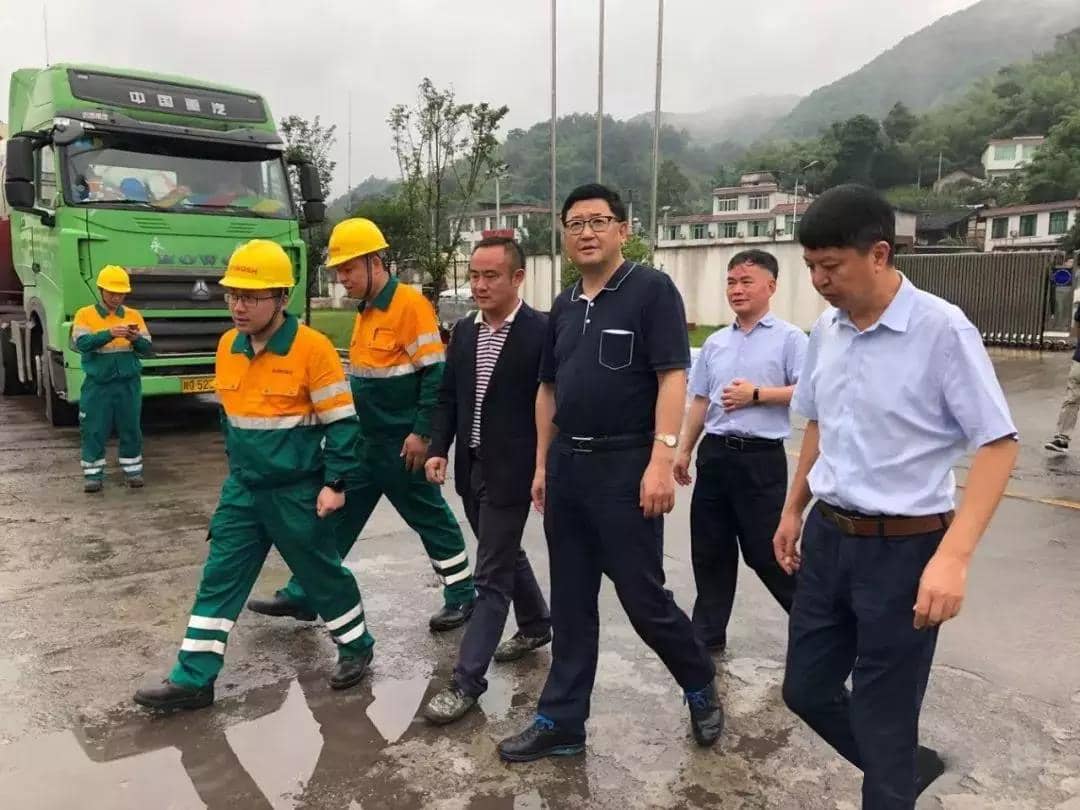 堯斯丹副省長(zhǎng)(右三)、張平副市長(zhǎng)(右二)、賈利華縣長(zhǎng)(右一)實(shí)地查看生產(chǎn)現(xiàn)場(chǎng)