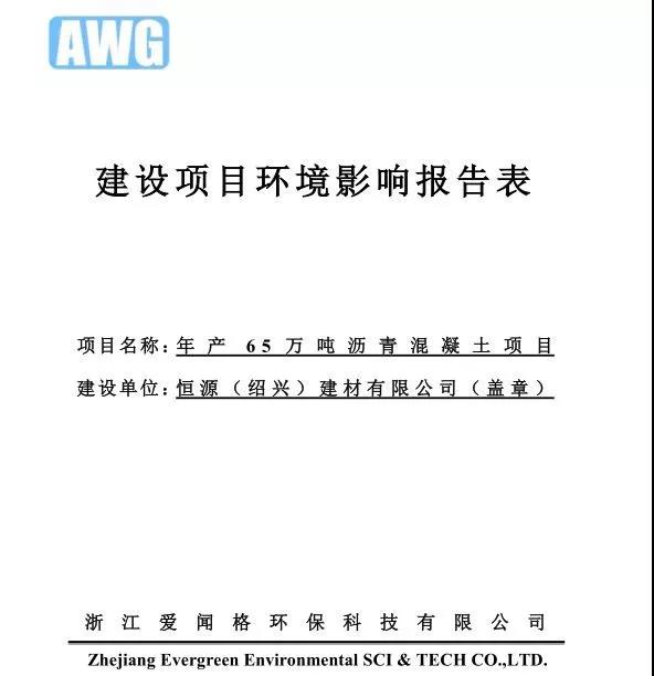 該環(huán)境影響報告表由浙江愛聞格環(huán)保科技有限公司完成。最后附有《恒源(紹興)建材有限公司年產(chǎn)65萬噸瀝青混凝土項目環(huán)境影響報告表技術(shù)咨詢會咨詢意見》,落款處有3位專家簽名。
