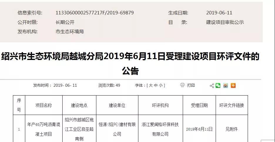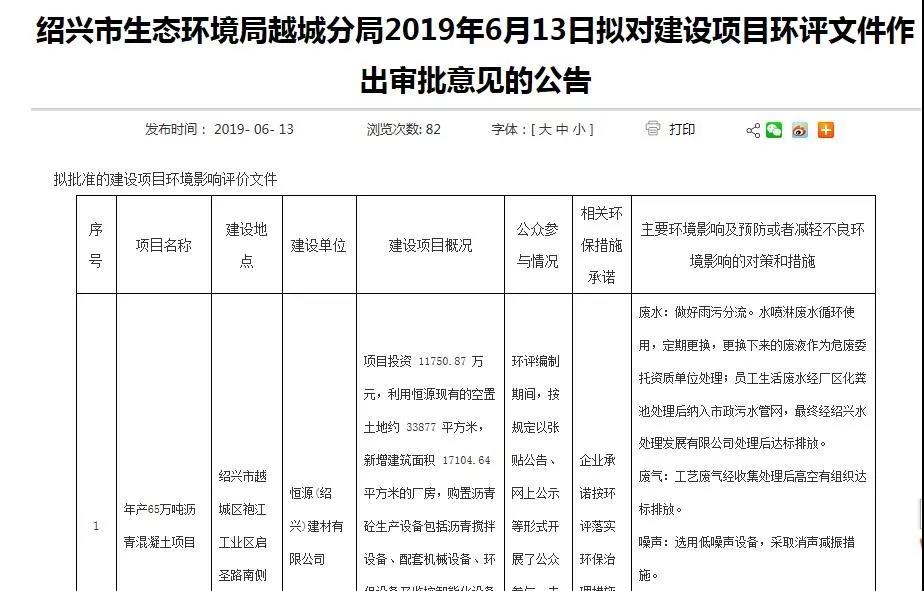而在此前一天的6月19日深夜,紹興日報社旗下“掌上紹興”發(fā)布《關(guān)于恒源(紹興)建材有限公司年產(chǎn)65萬噸瀝青混凝土項目的情況說明》,該說明落款為越城區(qū)人民政府、紹興市經(jīng)信局、紹興市生態(tài)環(huán)境局、紹興市自然資源和規(guī)劃局。