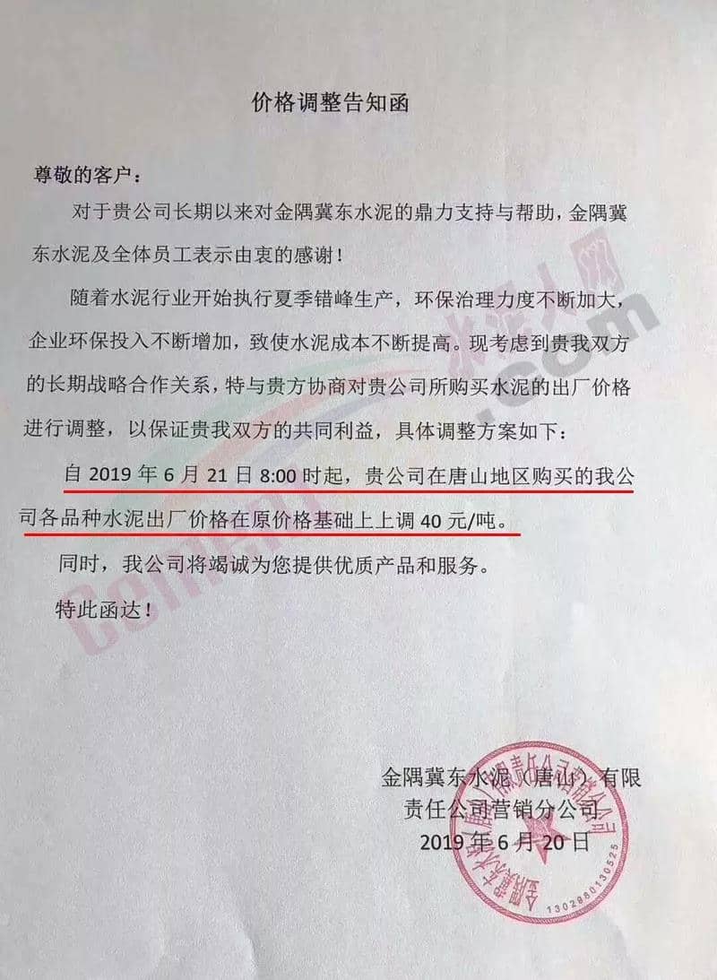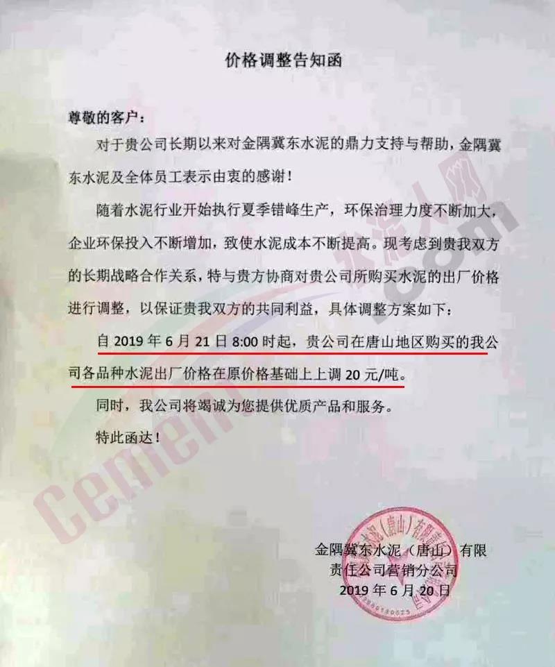 冀東水泥唐山公司等主導(dǎo)企業(yè)發(fā)布調(diào)價(jià)通知稱:隨著水泥行業(yè)開(kāi)始執(zhí)行夏季錯(cuò)峰生產(chǎn),環(huán)保治理力度不斷加大,企業(yè)環(huán)保投入不斷增加,致使水泥成本不斷提高。特與客戶協(xié)商對(duì)其購(gòu)買水泥的出廠價(jià)格進(jìn)行調(diào)整,以保證雙方共同利益。自6月21日8時(shí)起,在唐山地區(qū)購(gòu)買的各品種水泥出廠價(jià)在原價(jià)格基礎(chǔ)上上調(diào)20-40元/噸。