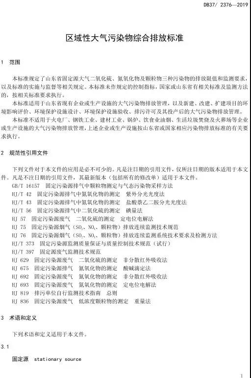 至此,山東省以《流域水污染物綜合排放標(biāo)準(zhǔn)》和《區(qū)域性大氣污染物綜合排放標(biāo)準(zhǔn)》為統(tǒng)領(lǐng),具有山東特色的地方環(huán)境標(biāo)準(zhǔn)體系基本建立。從2003年以來山東省共發(fā)布102項(xiàng)各類環(huán)境標(biāo)準(zhǔn),形成了以污染物排放標(biāo)準(zhǔn)為骨干、以環(huán)境管理類標(biāo)準(zhǔn)為支撐、以環(huán)境監(jiān)測方法標(biāo)準(zhǔn)為輔助的標(biāo)準(zhǔn)體系,圍繞各類重點(diǎn)環(huán)境問題打造“標(biāo)準(zhǔn)簇”,有力支撐了環(huán)境質(zhì)量改善和新舊動(dòng)能轉(zhuǎn)換?!秴^(qū)域性大氣污染物綜合排放標(biāo)準(zhǔn)》原文如下: