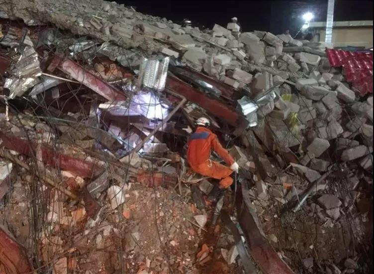 現(xiàn)場(chǎng)圖片顯示,戴著安全帽的救援人員穿過(guò)地面上的鋼筋水泥,將傷者運(yùn)送至救護(hù)車,同時(shí)挖掘機(jī)將倒塌后的建筑廢料分流到一邊。大量傷者的親屬則在事故地點(diǎn)附近等待消息。