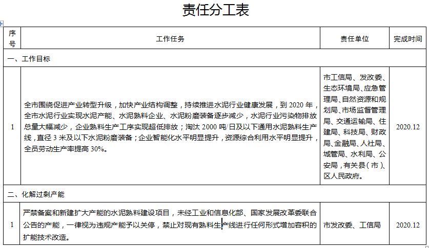 (一)明確工作責任。各縣(市、區(qū))政府、有關(guān)部門要充分認識到貫徹落實省水泥行業(yè)轉(zhuǎn)型發(fā)展行動方案的重要性和緊迫性,積極協(xié)作配合共同完成方案確定的各項工作任務(wù)。各縣(市)、區(qū)政府對本地水泥行業(yè)轉(zhuǎn)型發(fā)展工作負總責,加強組織領(lǐng)導(dǎo),結(jié)合本地實際,貫徹落實水泥行業(yè)轉(zhuǎn)型發(fā)展行動方案有關(guān)任務(wù)舉措。水泥企業(yè)是實施轉(zhuǎn)型發(fā)展的責任主體,要嚴格依法依規(guī)化解過剩產(chǎn)能、推進兼并重組、實施綠色化轉(zhuǎn)型。市工業(yè)和信息化局、發(fā)展和改革委員會、生態(tài)環(huán)境局、市場監(jiān)督管理局、自然資源和規(guī)劃局等部門要根據(jù)職責分工,加強指導(dǎo),完善相關(guān)政策措施。